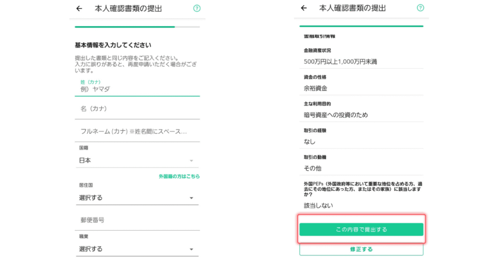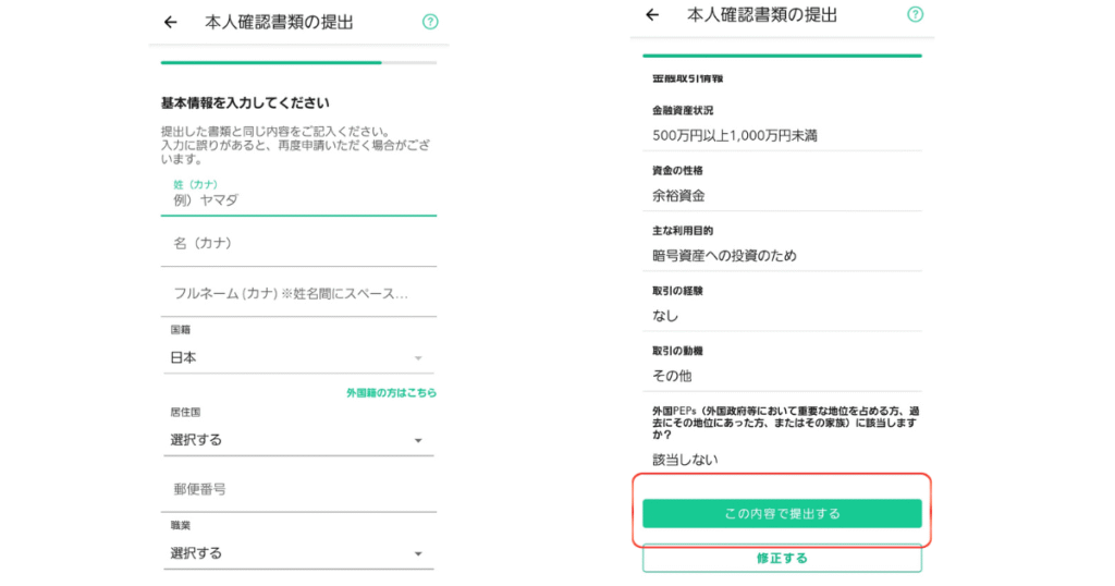 入力が完了したら「この内容で提出する」を押して、本人確認書類を提出します。