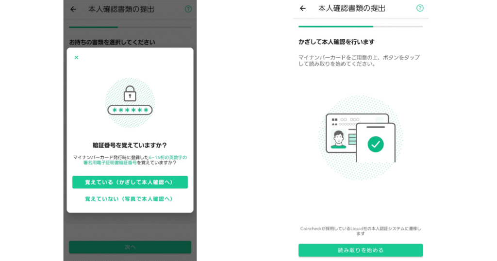 「かざして本人確認」を利用する場合、マイナンバーカードの暗証番号が必要です。